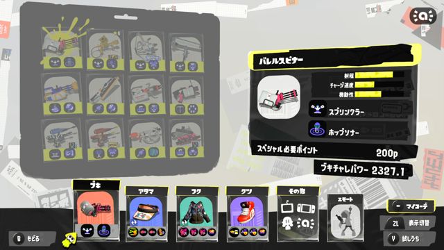 - 実況者がネタ動画を作成するために、ギアパワー統一する(サブ性能57(3, 9)など)