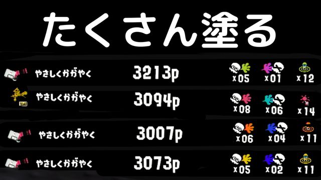 ガチアサリの延長戦を含めて、塗り5000p以上を達成したいです。