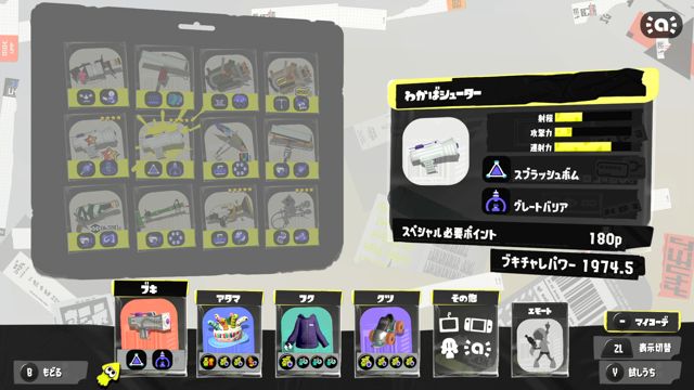 機動力も塗り性能も高いです。スペシャル必要ポイントも少ないので、グレートバリアを発動しやすいです。